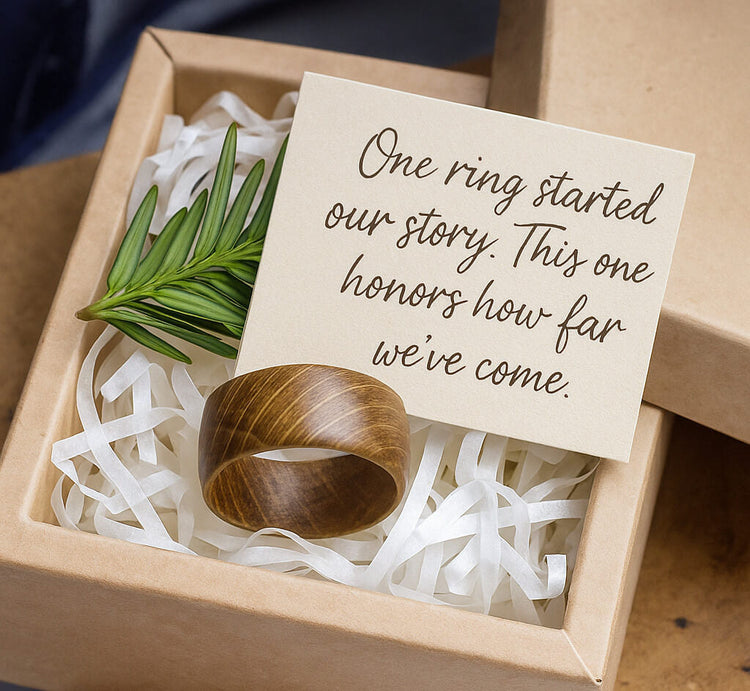 In many traditions, the 5th wedding anniversary is marked with a wooden gift — a symbol of strength, growth, and a love that’s built to last. Unlike mass-produced items, wooden rings carry that symbolism in a form that’s simple, wearable, and deeply meaningful.